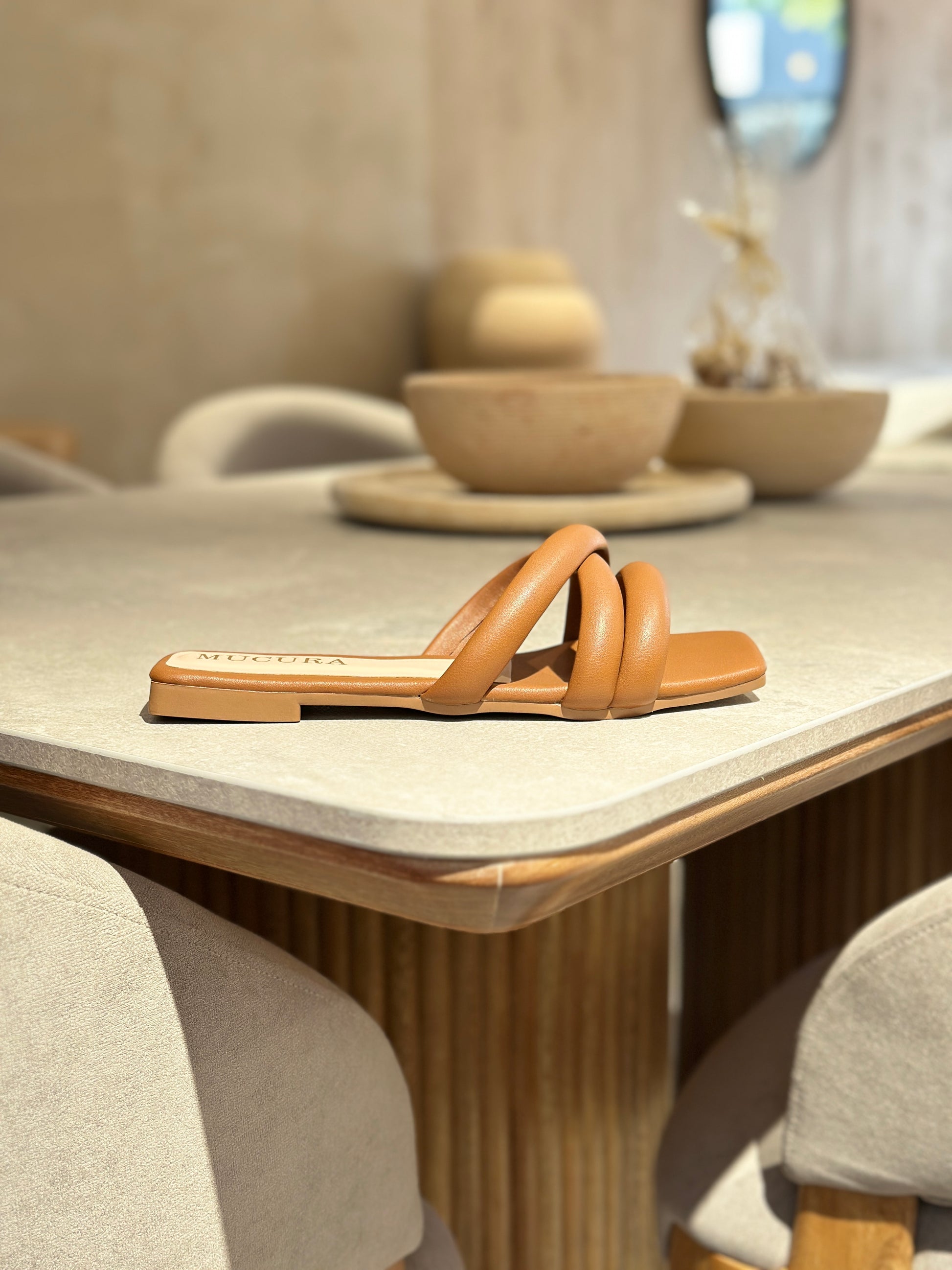 Eleva tu estilo diario con las sandalias planas "Ágata" en color miel, diseñadas para mujeres que buscan versatilidad y sofisticación en cada paso. Este modelo destaca por sus tres delicadas tiras cruzadas, que aportan un toque de elegancia a un diseño clásico. El tono miel es perfecto para combinar con cualquier outfit, haciéndolas ideales para el día a día o eventos casuales.